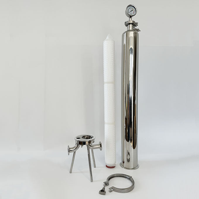 Single-round Sanitary Liquid Filter Housing is designed to meet the sanitary requirements. It adopts sanitary pipe fittings, no blind angel and residual liquid, easy to clean and disassemble, suitable for small flow filtration in low and medium pressure environment. It is widely used in food and beverage industry.
